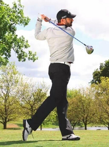 奎罗斯的起杆动作非常简洁,并且下半身保持着非常高的稳定性。很多业余球员过早失去了自己腿部或者臀部的位置,导致无力的挥杆,因为身体各部分的同步性被破坏了。