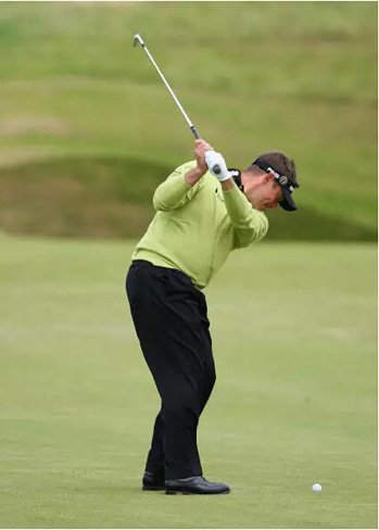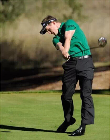 正确的挥杆动作,应该有将杆头拉向地面或左脚前方的感觉。