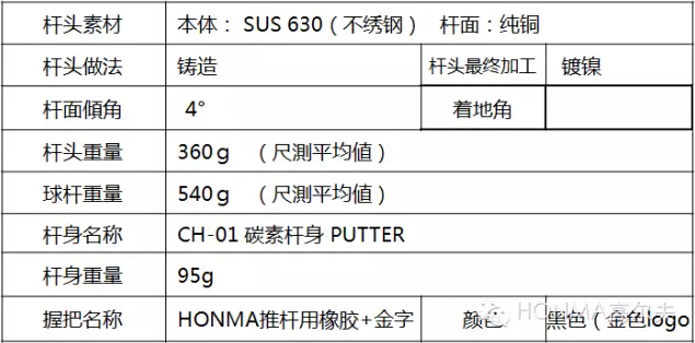 针对中国球手研发的HONMA CH-01是一款易轻松推球,且集轻量化杆身、稳定击球轨迹及柔软击球触感于一体的高性能推杆。
