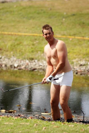 脱了袜子去打高尔夫球