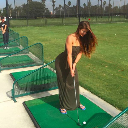 勇士队的神投手克莱-汤普森单节37分被誉为NBA的又一神迹,已经入选今年的NBA全明星。一人得道鸡犬升天,随着汤普森的名气暴涨,他的女友也备受关注。最近,NBA 球星克莱-汤普森的女友Hannah Stocking 发布了一张自己打高尔夫的照片。