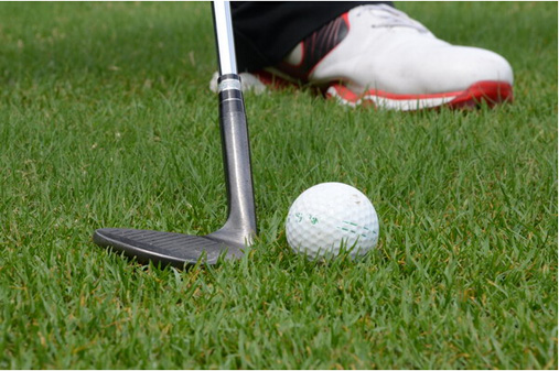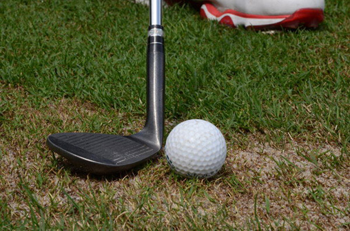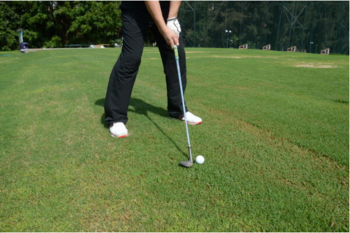 图1、图2:要打出好的高抛球必须要有好的球位,需要草将球托起一定的高度,陷入草中或地里的球不适用高抛打法。