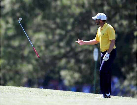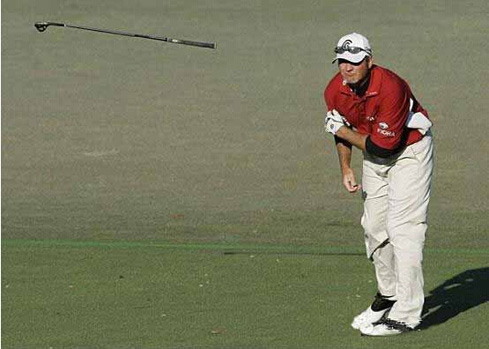 伊恩-保尔特(Ian Poulter) 在2009美国公开赛上一击不顺,怒插球杆。