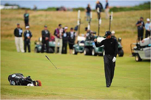 2009英国公开赛,伍兹未能晋级,将球杆鄙夷的扔掉。