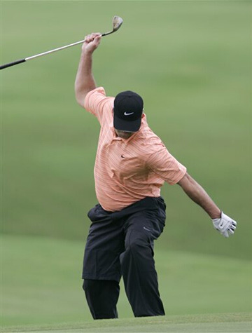 克里斯-考奇(Chris Couch)在2007年梅赛德斯奔驰锦标赛上向一支挖起杆发泄怒火。
