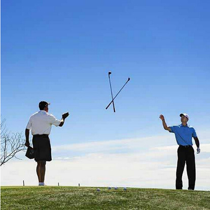 伍兹愤怒摔杆并不多见。2009年WGC-埃哲森比洞锦标赛上,伍兹和球童史蒂夫-威廉姆斯空中交换球杆。