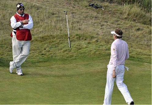 2008的英国公开赛上,多亏保尔特的球童精神集中,才没有被飞杆砸中。