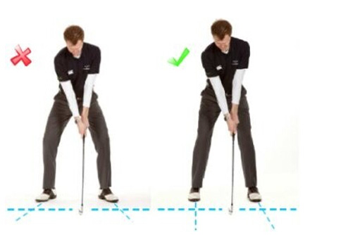 早期的高尔夫站位的身体姿态是背部弯曲成英文的C字型,但是现在要求臀部后顶、背部挺直、肩部自然下垂的姿态。身体的姿态对上杆到下杆整个过程都会产生影响。