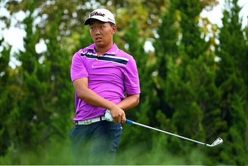 17岁的“业余小霸王”金诚身经百战后似乎早已波澜不惊,淡定的表示“平时压力也不是很大”。第一轮打出76杆(+4)后,金诚也没有露出任何沮丧,依然是那幅似笑非笑的脸。第二天,他就打出66杆冲到了排行榜的前列。“如果太专注于比赛,就尽量去多说话,分散一下注意力。”