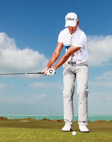 “业余球手身上通常会犯两个错误,要么在击球区域减速,要么过于紧张未击球之前便抬头看球,造成打薄现象。切杆关键在于流畅缓慢的挥杆以及良好的节奏。”