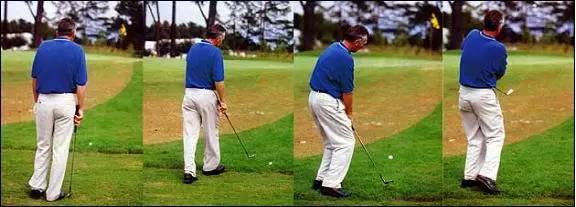 身体语言与自信心有着直接关系,这点在高尔夫中尤其适用。任何时候当你因恐惧不敢击球,你的身体都会出卖你。面对棘手的劈起球时,许多球手会带着明显的忧虑走上前去,低垂着头和双肩,不知所措。这是球手怀疑自己能力时的典型表现,他们的表情在说:“我没法打这种球,我的能力还不够...”结果呢?自然是差强人意。