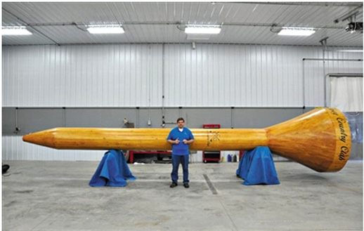 世界上最大的高尔夫球座长9.37米,顶端直径1.91米,躯干部分宽64厘米。由一名叫吉姆·博林的美国人制造。常人真的很难理解博林为何要制造一个如此巨大的高尔夫球座。
