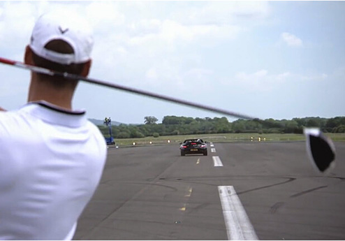 2013年8月26日,丹尼尔-帕克斯和尼古拉斯-帕克斯兄弟(Daniel and Nicholas Parkes)在英国诺丁汉郡爱德华尔顿市政高尔夫球场(Edwalton Municipal Golf Course)创造了这项记录。丹尼尔使用5号铁击球,尼古拉斯则身着护具在距离丹尼尔100米远的距离处接球。