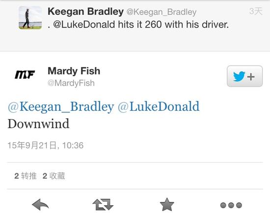 OK,卢克-唐纳德是巡回赛上发球距离最短的球员之一。而基根-布拉德利恰巧是巡回赛排名最远的选手之一,他的平均发球距离为306.1码。可是为什么要挑朋友的毛病?