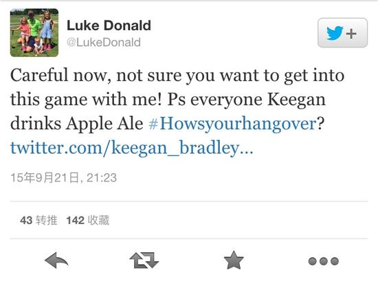 哦喔!星期一,终于轮到卢克-唐纳德回应了。可他将雄性激素的问题从力量转到了喝酒上。