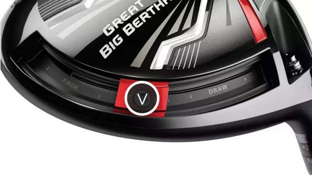 Great Big Bertha 发球木杆面边缘的重心调节块的滑槽已经标注出了直线球、左曲球和右曲球的位置。