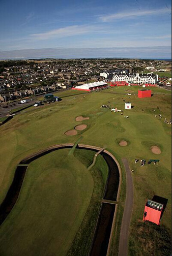 你无需自感是个倒霉蛋来感受这个严酷的收尾洞的强大气场,因为每个人在这个洞上都会感受到那种无形的压力!你必须得击球飞越巴里小溪(Barry Burn),而且不是一次,而是二次;第一次的左边就是球场边界,不得跨越。而当风刮起来时(这里经常刮风),4杆(保帕)在这里就是一个很了不起的成绩了!范-德-维尔德(Van de Velde)在这里曾二度打出了5杆。