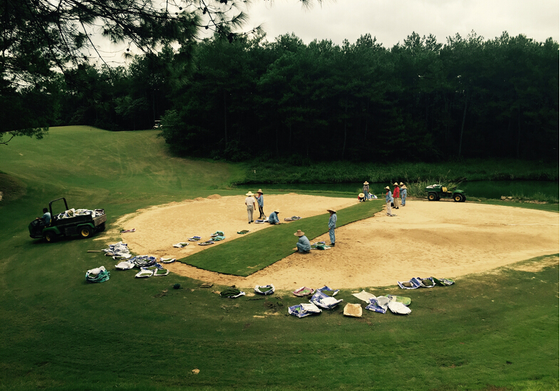 目前,第一个改造的彩虹谷8号洞果岭已经改造结束,进入养护期,不日即可全面开放。