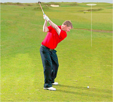 面对这种棘手的击球,球手容易身体发紧。这时候,你很容易加快挥杆速度,希望由此获得额外的击球距离。但是,这很容易击打出不规则的一击。这时,你需要的是保持正常的节奏,让球杆正常工作。保持平稳的节奏的一个好方法是,在上杆到顶点时,稍微停顿一下。