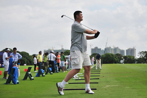 因为身高的缘故,姚明需要特制的球杆,对这一点,一度手把手指导姚明的高尔夫名将张连伟赞不绝口:“他的球杆有50多英寸,这么长的杆很难打,但他还能打200多码,说明他很有悟性。”