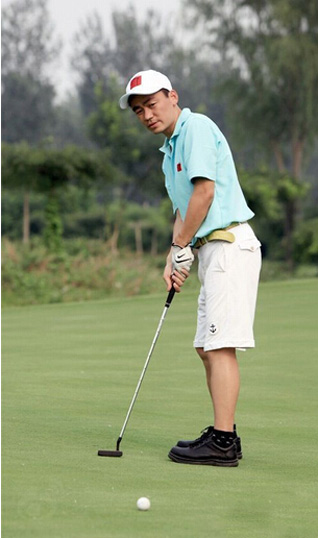 事实上他的痴迷程度也不比任何人差,经常是背着杆,趁着出去演出,看见有球场了,就打一场,每周至少4次的练习,每次坚持打400球。高尔夫对孙楠还有不一样的意义,他的妻子潘蔚,也是相识于高尔夫球场。
