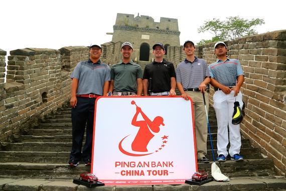 (从左至右分别为平安银行中国美巡赛球员:加拿大球员王耀进Eugene Wong, 澳大利亚球员Peter Cooke, Josh Geary, 美国球员Niall Platt和Alexandra Kang)