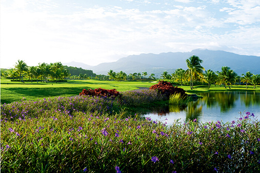 6号洞是整座球场最美的球洞。这个203码的三杆洞以惊艳的云盖雨林为背景,球道右侧覆盖着大面积的湖水。只有打出精准的长铁杆才不至于在果岭上出现三推的局面。9号洞是个长455码的右狗腿球洞,开球的落球点非常狭窄,且两侧种植有大面积的棕榈树。一旦开球出现些许偏差,你就不得不面临与棕榈树讨价还价的局面,因为大多数情况下,它们会挡在你面前。除此之外,9号洞的果岭纵深不足,任何对距离判断的不准确都会给你带来困难的救球。