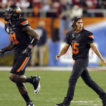 福勒喜欢在周末穿上牛仔队的橙色队服上场