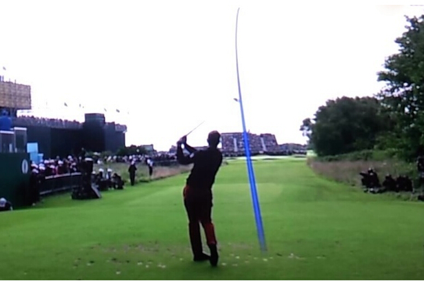 译者注:第一张图是唐纳德在一个三杆洞做fade攻果的视频截图.此球由干fade幅度不够未达到预期效果.和slice无关。 (来源:高迷网)