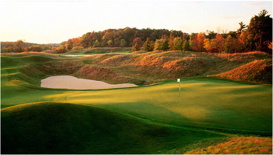 皮特-戴伊最早的鸿篇巨制可以追溯到1964年。这个在印第安纳波利斯地区的球场是他的设计美学和哲学首次在通往大师之路上的作品,而其中的不少创新的想法与枕木的引进都是他在游历苏格兰之后借鉴而来。以水为蓝本的第16和第18洞为此后戴伊在设计各种美妙的水障碍奠定了基础。“坏小子”约翰- 达利在此赢得了1991年美国PGA锦标赛的冠军。