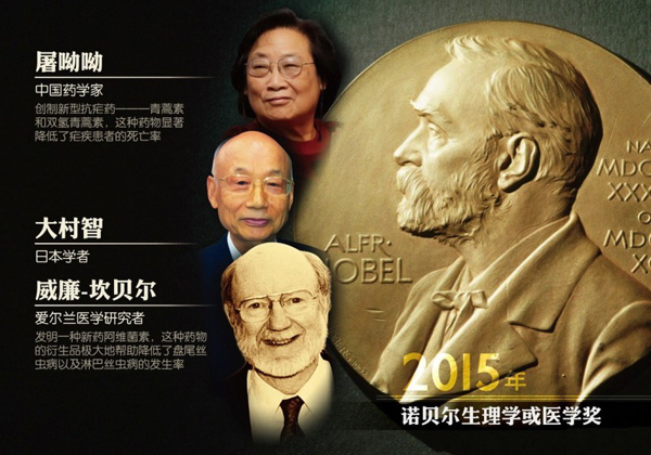 当地时间2015年10月5日,瑞典斯德哥尔摩,诺贝尔委员会举办新闻发布会,宣布2015年诺贝尔生理学或医学奖得主。中国药学家屠呦呦,美国科学家威廉-坎贝尔、日本科学家大村智分享该奖项。