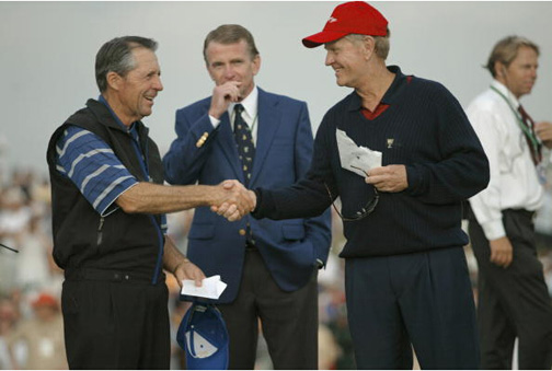 “黑骑士”加里-普莱尔(左)和“金熊”杰克-尼克劳斯握手言和