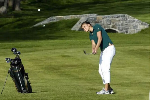 大学时,凯莉是美国康涅狄格州乔治城大学高尔夫校队的队员。先来看看她打高尔夫时的照片,凯莉在球场上绝对是一道风景: