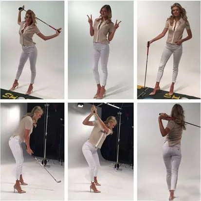 这不,在拍片时,凯莉也要秀秀自己的挥杆动作: