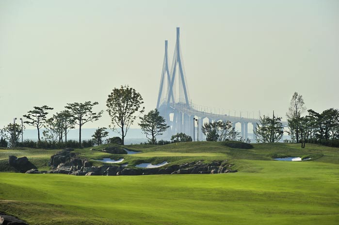 球场改造整体花了20亿韩元(1100万人民币)。这钱是怎么花的?从2013年开始,全部18洞果岭都进行了改造。之前平均每个果岭有3个洞杯区域,改造后变成6个。简单地说就是把起伏较大的果岭改造得更平缓了。虽然果岭本身的难度降低了,但设计师通过增加沙坑、发球台后移增加距离和球道收窄来加强了球场整体的难度。球场一共增加了6个沙坑,4个发球台后移,12条球道的宽度进行了调整。果岭难度降低了,开球和铁杆精准的球员更有机会抓鸟,但整个球场挑战性却没有降低,也不会削弱会员们对球场的兴趣。