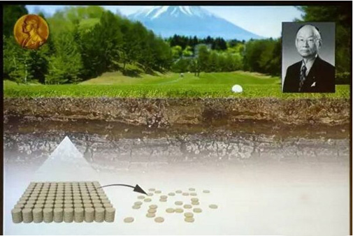 这是瑞典卡罗琳医学院在公布诺贝尔获奖者时使用的图片,演示了大村智教授从高尔夫球场获取关键微生物