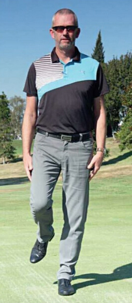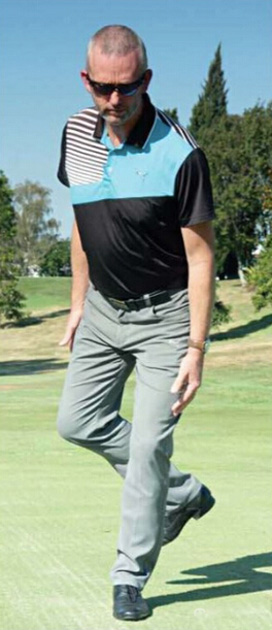 3. 一旦在上一步中能够保持身体的平衡,你就可以增加挥杆时的身体转动动作。从起杆到上杆到送杆的过程,不断增大身体施加于左腿的力量,并且尽量保持平衡。