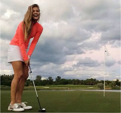 被称为是“甜心炸弹”的天使超模妮娜-阿格戴尔(Nina Agdal)是2014年《体育画报》泳装特辑的封面模特,也是一位高尔夫爱好者。她曾多次在Instagram上传自己的挥杆视频。这位超模还透露,自己最出色的技术便是一号木开球,她可以将球开出200多码。