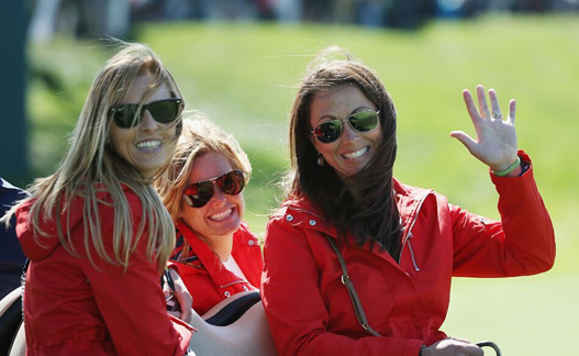 与所有队际赛一样,女士们都是球队的中坚力量,太太团无论任何时候都能秒杀摄影师的大量相机内存。总统杯上斯皮思与女友的深情一吻,让所有人印象深刻,而莱德杯上的欧洲队和美国队的太太团们争奇斗艳也不是第一次了,这一次,他们又会带来怎样的新花样呢?当然值得去期待。