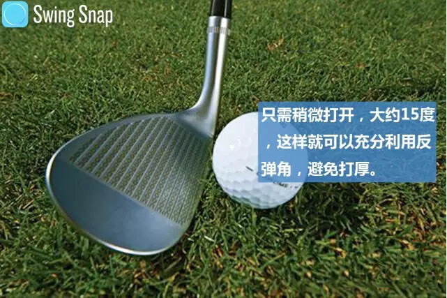 最好还是稍微打开杆面,只要打开15度,就可以利用反弹角,如果想要把球打低,视杆面打开的程度适当的将球位右移即可。