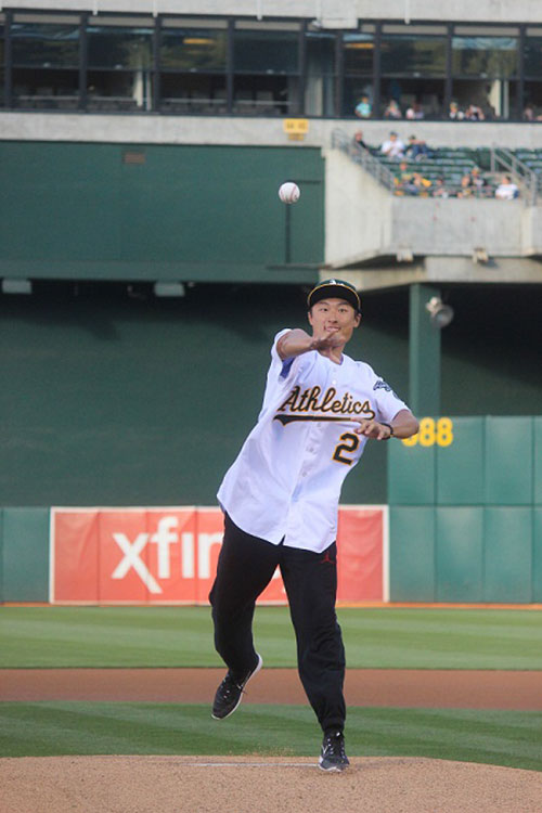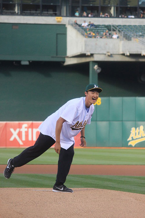 同样,这周的早些时候,作为奥克兰运动家队的嘉宾,我有幸现场观摩了美国职业棒球大联盟的比赛,并受邀在运动家队与明尼苏达双城队开赛之前,为比赛荣耀开球。我从来没有投掷过棒球,因此很紧张。好在前一晚我在酒店的停车场小小练习了一下。当我身披奥克兰运动家队的2号战衣,开赛前站在球场上的时候,我听到了场上主持人在大声的朗读着我的名字。我准备好了,随即将球投给了运动家队的球员。这个投掷还不错,但是我想,我还是继续去打高尔夫吧。