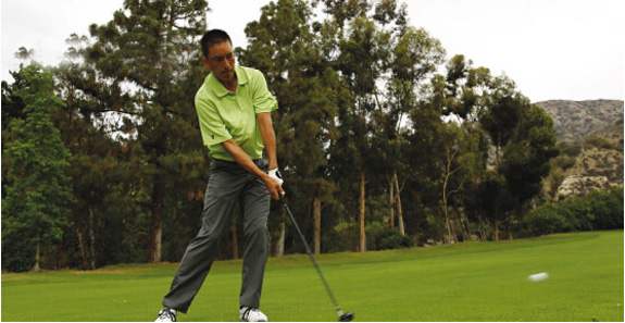 之所以这么做,很简单。现在的球道木杆已经拥有了惊人的击球距离!因此没有必要去尝试用力挥击,仅要求保证扎实触球,尽量击出笔直的弹道。通过保持双臂在胸前充分伸展,你的挥杆不再是手臂和手腕的动作,更多的是身体驱动的挥杆。