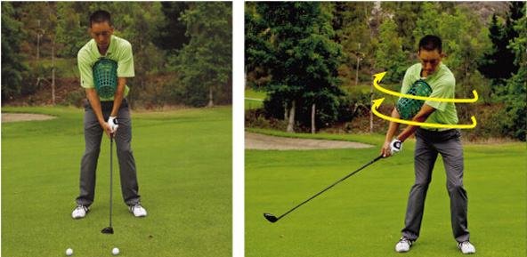 当进行这一练习时,注意你身体的转动将更加自如。重复10至20次这种挥杆,接下来运用相同的挥杆感觉进行击球。你会发现这种以身体驱动的挥杆更宽大、更高效,同时更加省力。记住,不要使蛮力去挥击球道木杆,而是尽你所能去打出笔直的击球。