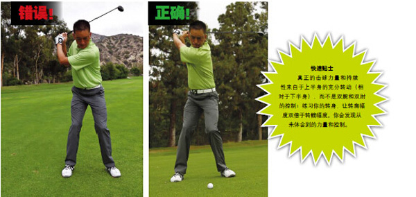 真正的击球力量和持续性来自于上半身的充分转动(相对于下半身),而不是双腕和双肘的控制!练习你的转身,让转肩幅度双倍于转髋幅度。你会发现从未体会到的力量和控制。