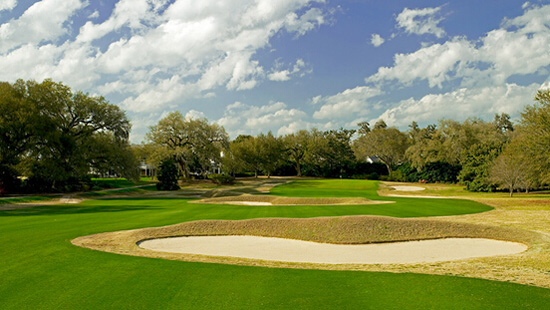 1925年塞斯-雷纳设计,在九年年代后期汤姆-多克大胆改造了面积巨大且过于四方形的果岭,使得球场更符合现代化的定义,球场上尽是小橡树,铁栏以及大量的沼泽,景观非常美妙。