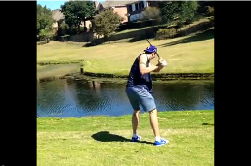 眼下,NBA新赛季季前赛激战正酣。达拉斯小牛队名将、德国人诺维茨基不忘抽空来高尔夫球场挥两杆。只是,他的球技实在不敢恭维: