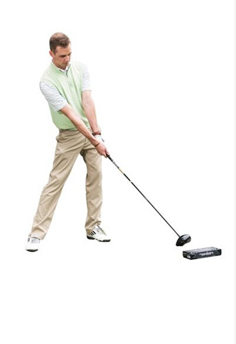 如果你连两个Tee也没有的话,那就在唯一的Tee前方随便摆放一点什么东西吧,比如这个黑色的包装盒,也能起到治愈顽疾的作用,改善你的击球轨迹和击球角度,让球飞得更准更远。
