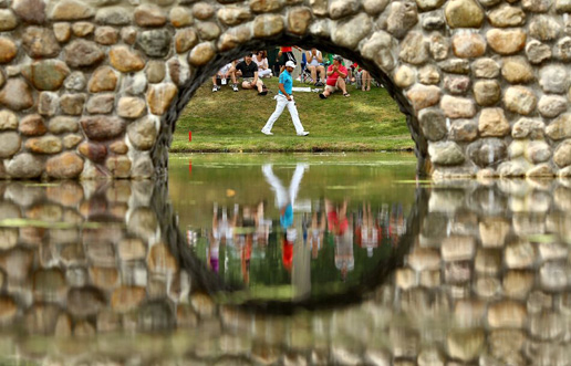 2005年英国公开赛英国选手Robert Coles与球童通过老球场Swilcan桥