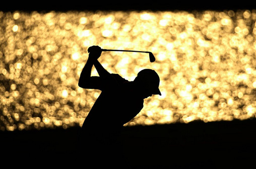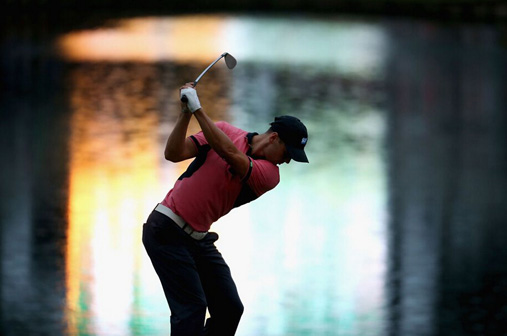 2014年5月球员锦标赛决赛凯梅尔在暮色中击球