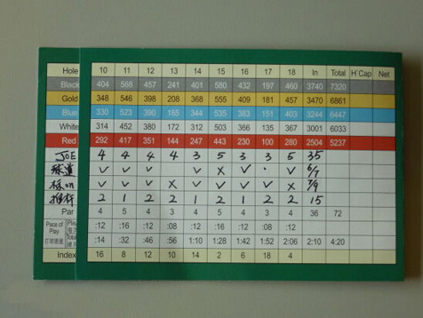 如果将每场球的杆数记下来,这很好。但还不够!应该把每场球的开球成功率,标准杆上果岭率,推杆数等都记下来,找出需要提高的地方,努力改善。如果去上高尔夫课程,应该把课程要点,还有理解和感受都记下来。把这些记在一个小册子,经常翻看,这样就能发现规律,找到需要努力的地方。
